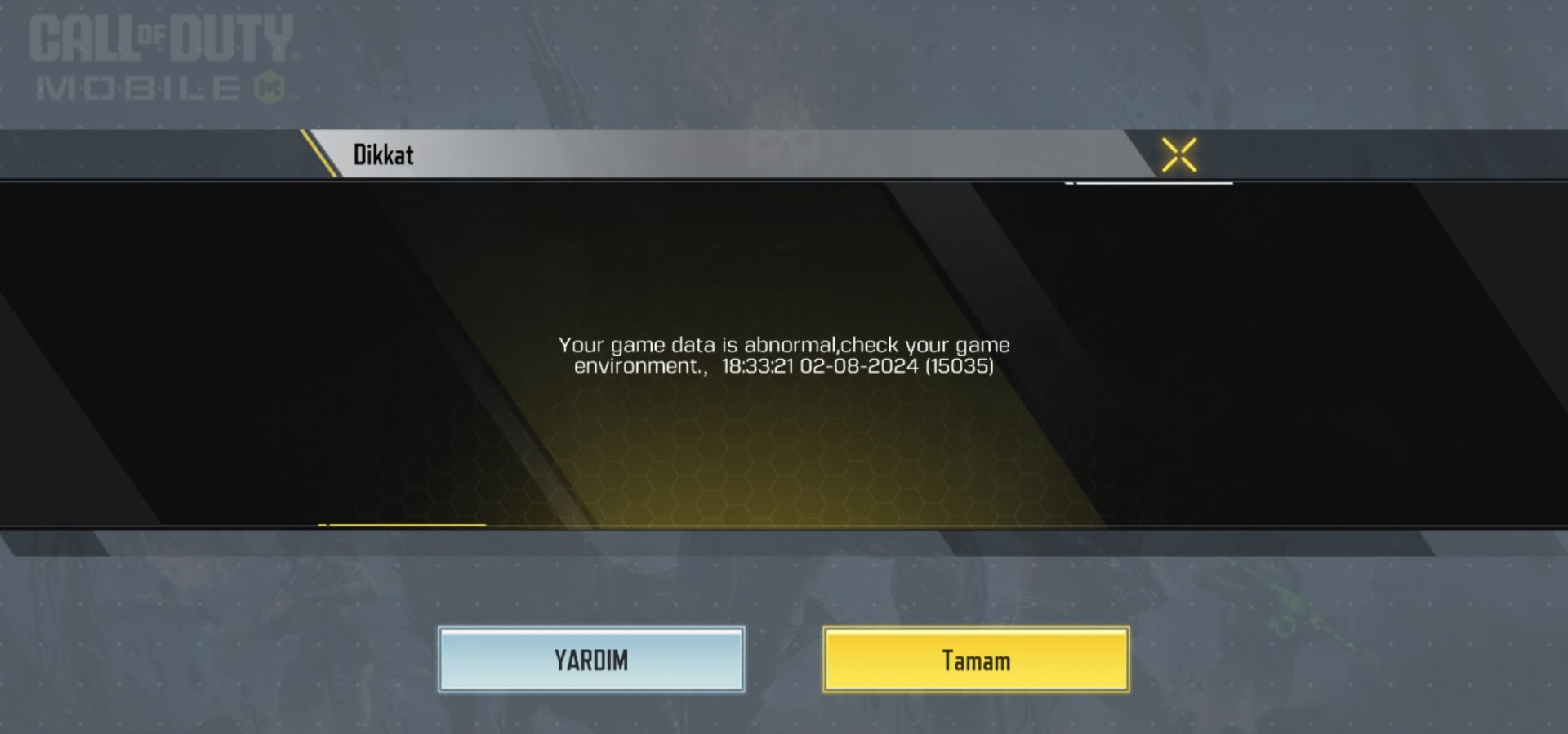 Merhaba. Dün oyuna girmek isterken bu hatayı aldım.