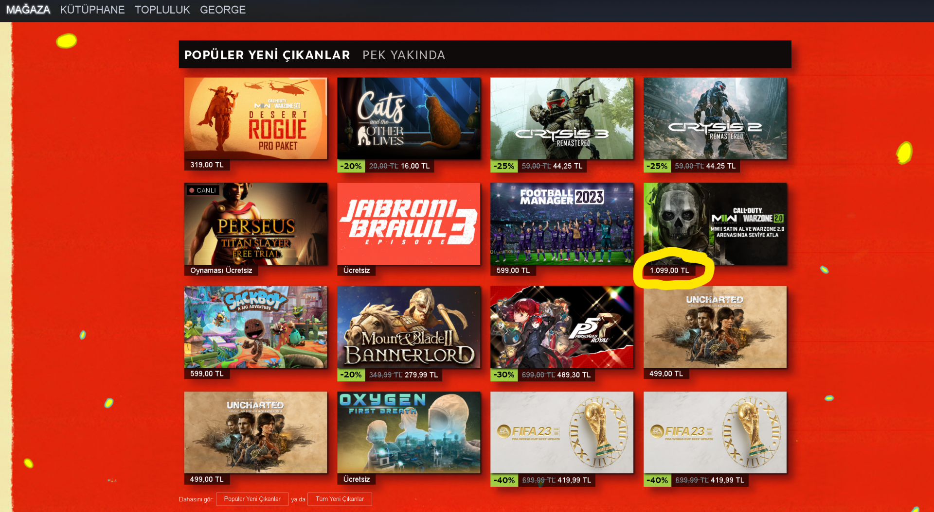 Arkadaşlar sonbahar indirim döneminde hem Steam'de hem Epic'te hem de battle.net'te bir sürü oyun indirime girdi ama benim almak istediğim CoD MW2 hala indirime girmedi. Normal versiyonu 1100TL Vault Editon'u 1500 liradan satılıyor PC'de. Geçtiğimiz yıllarda da yeni çıkmış olmalarına rağmen Black Friday'de CoD oyunları hep indirime giriyordu fakat bu yıl diğer oyunların hepsi indirime girerken yeni çıkanlarda bir indirim yok. Reddit'ede bir sürü insan bu durumdan yakınıyor her yıl indirim olurdu ama bu yıl çok iyi satıyor diye yapmıyorlar diyorlar. Ayrıca konsol versiyonuna 15$ indirim yapılmış olmasına rağmen PC versiyonuna indirim yapılmamış. Sizce yarın yani kara cumada bir indirim olur mu?