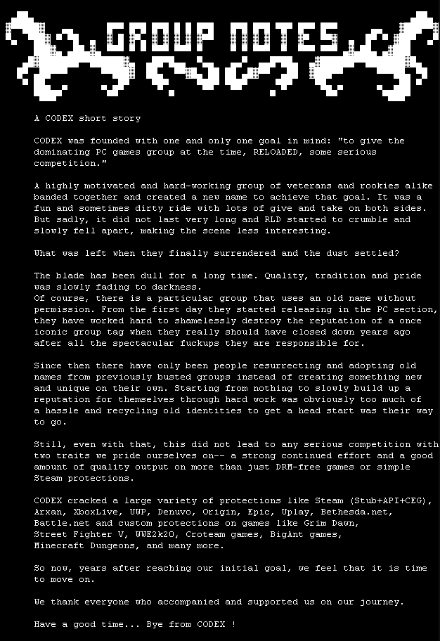 Evet arkadaşlar, Codex an itibariyle Scene'yi bıraktığını duyurdu.