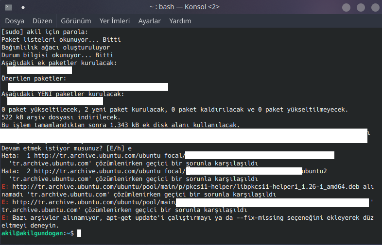 Hataya ufak bir örnek olarak aşağıdaki görseli verebiliriz. Herhangi bir program yüklemek istediğimizde yansı çalışmadığı için aşağıdaki hatayı almaktayız.