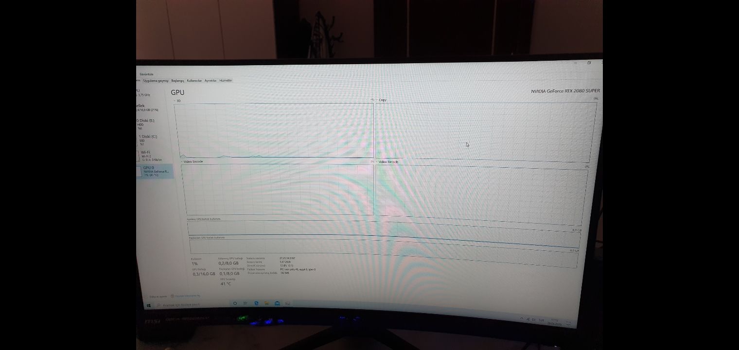 Görev yöneticisine gelip performans bölümünün (GPU bölümü) ekran fotoğrafını atabilir misin?