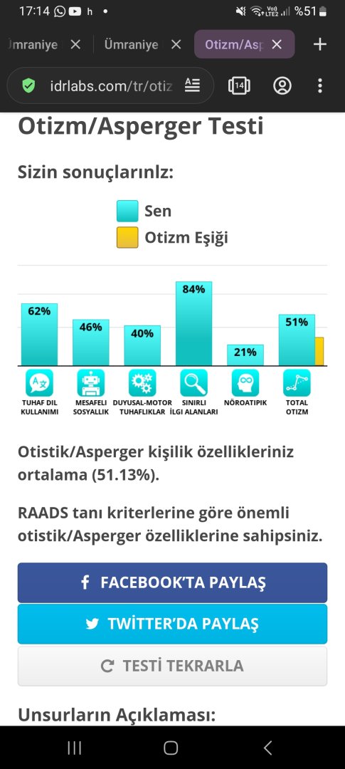 O zaman şizoid yok. Asperger/Yüksek işlevli otizm var sende. Geç kalma. Geç fark edilmesi kötü bir şey. Depresyonun geçmeme riski var çünkü.