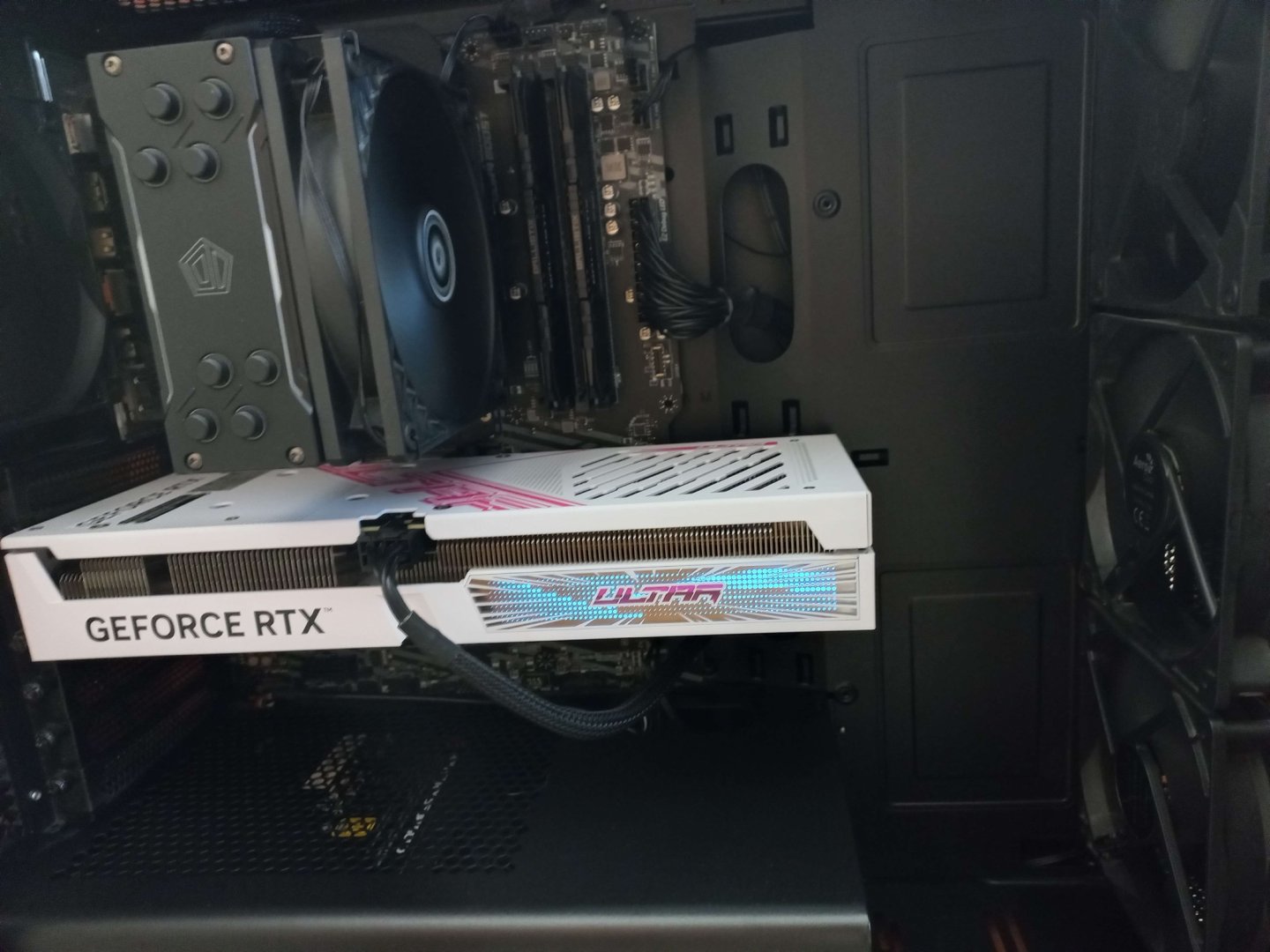 Dünkü MSI Ventus 2x Black incelemesinden sonra nihayet Colorful ile rahat bir bir nefes aldım. Öncelikle kart muhteşem, kutusundan malzemesine kadar her yerinden kalite akıyor. Kart beklediğimden daha büyük ve ağır çıktı, yalnız ağırlığına rağmen sokette sarkma yapmıyor. Ultra yazan ksımında RGB ışıkları bulunuyor, fanları oldukça sessiz ve yüksek RPM'lere çıkma ihtiyacı bile duymuyor yükte bile, soğutucu bloğu ve arka plakası bu TDP'ye sahip bir kart için fazlasıyla yeterli. Kartın görselleri;