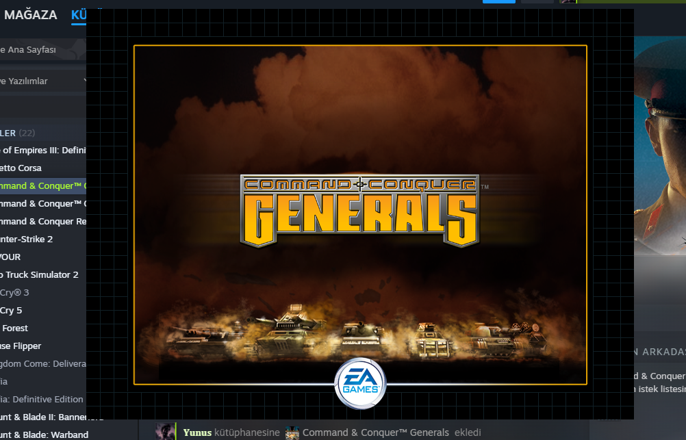 Steam'den yeni aldığım Command & Conquer: Generals ve Zero hour oyunları açılmıyor. Bu sorunu yaşayan başkaları var mı? Oyunu Steam üzerinden başlattığımda ekran donuyor ve Görev Yöneticisi'nden kontrol ettiğimde yanıt vermeyen bir bildirim alıyorum. Sonunda oyunu kapatmak zorunda kalıyorum. Bu sorun için bir çözüm bulabilecek olan var mı? Yardımcı olabilirseniz sevinirim...