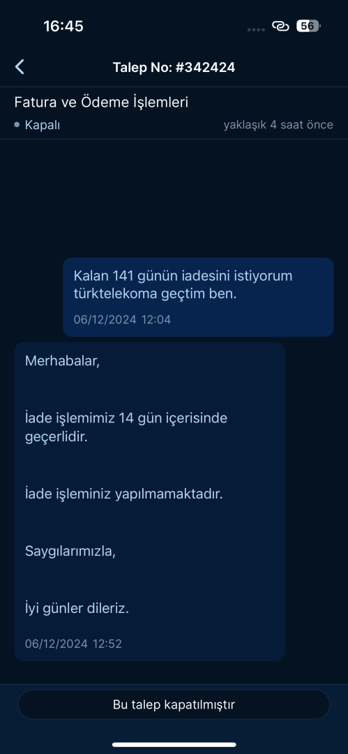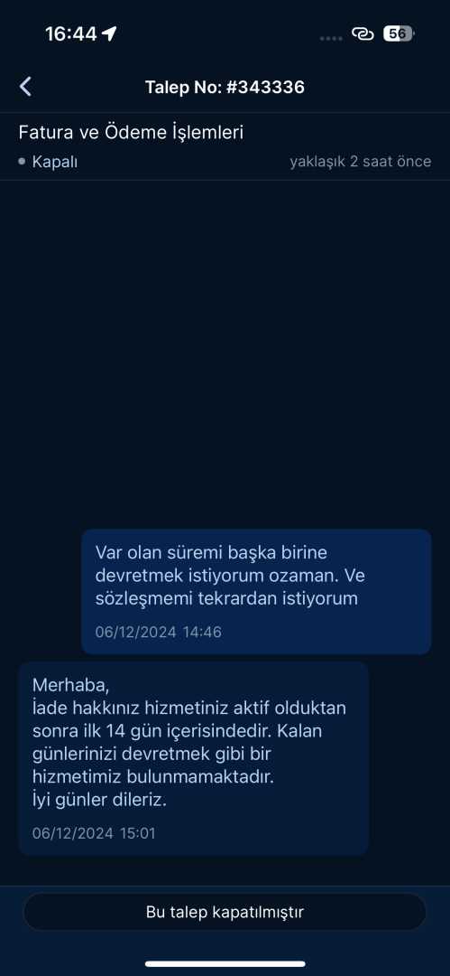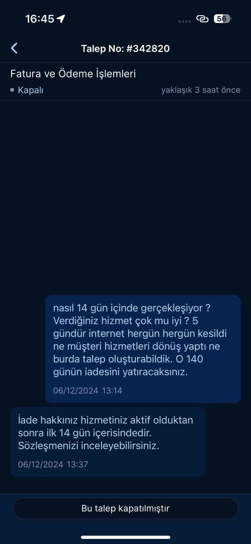 Sen bu talebi nasıl açarsın demişler 😃 çözüldü demeden sorun devam ederken anında kapatmışlar öyle mi? 😏 yoğun saatler geldi yine aynı şekilde devam.