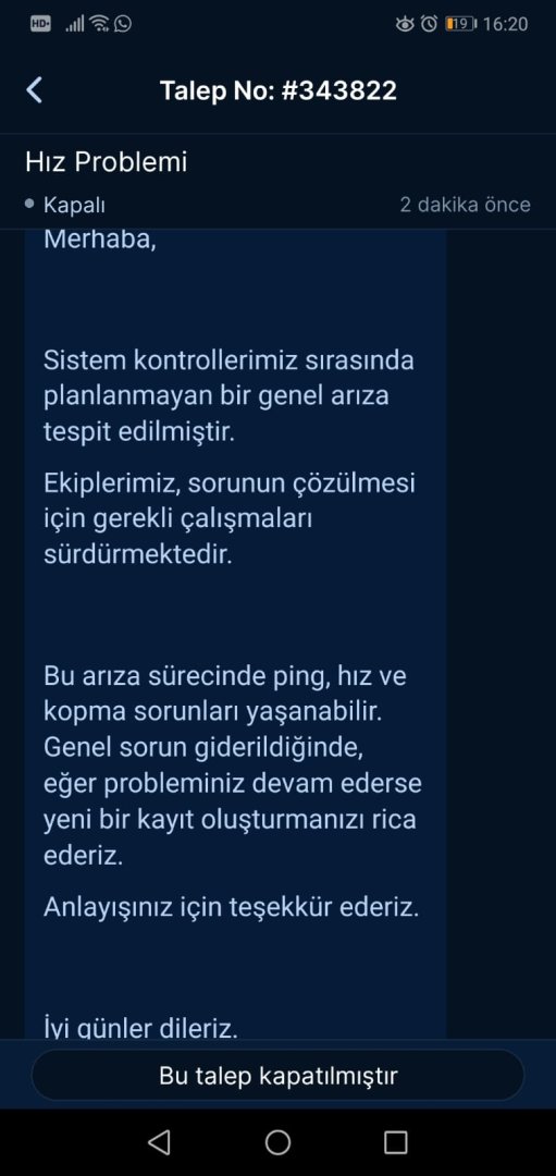 Arıza kaydı sorgusunda da arıza yok diyor.Arıza kaydı açınca genel arıza var diyorlar.