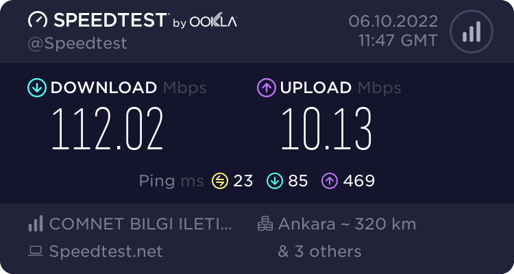 Öncelikle bana sağladıkları download speed 100 Mbps değil ama evimde 92 Mbps alıyorum bazen 90 oluyor.