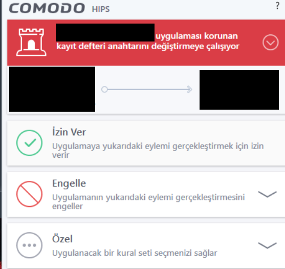 Comodo Antivirus'ten memnunum, ama bu yazılım; ne zaman bir uygulama kurmaya çalışsam devamlı engel bildirimi gönderiyor (1. ekte görüldüğü üzere). Bu sorunu nasıl çözerim, nasıl geçici olarak engellerim; veya (devamlı, her aksiyona bildirim gönderdiği için) ayarlarını rahatsız etmeyecek şekilde düzenlerim? Şimdiden teşekkürler.