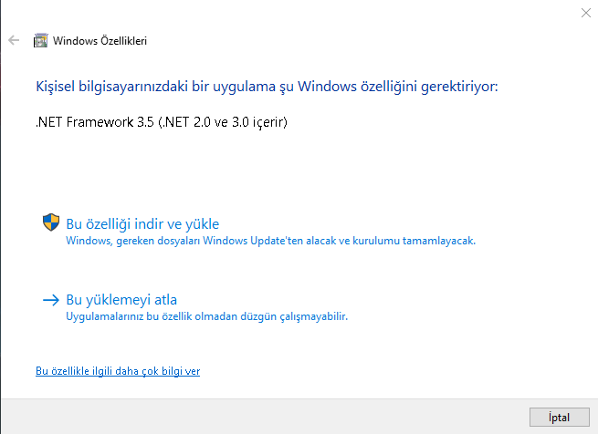 Çözüldü Control oyunu için .NET Framework 3.5 istenmesi