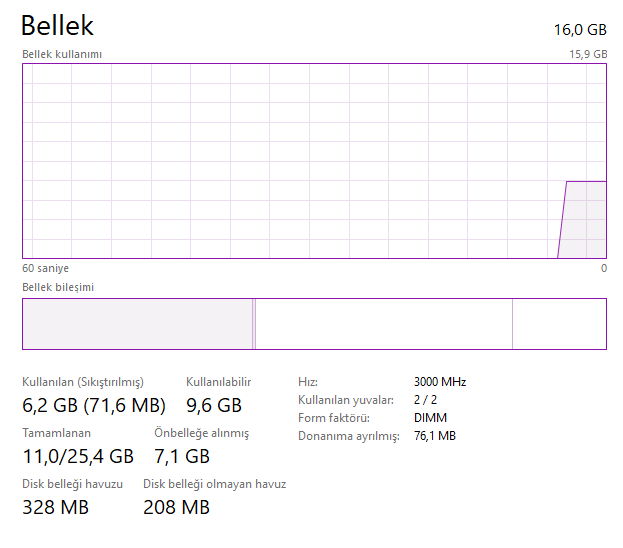 RAM'i takarsan BIOS menüsünden XMP olur RAM'leri tam verimine çekmek için ayar o moda getirir onu aç PC'ye girince görev yöneticinsen GB ı değişir zaten CPU Z ile de sdp bölümünde Dual yazar o zaman doğru olur.