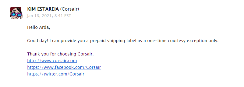 Bende halen uğraşıyorum Corsair bana şöyle bir mesaj attı tam anlamadım ön ödemeli bir etiket felan diyorlarda ben mi ödeyeceğim?
