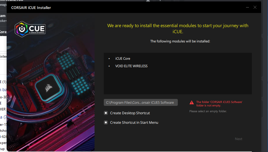 Corsair iCUE "the folder Corsair icues software folder is not empty" hatası
