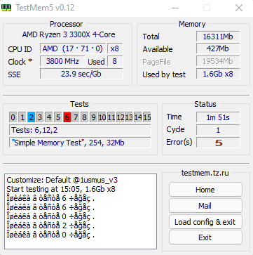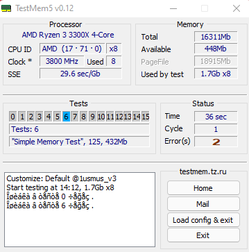 TestMem5'i 60 saniye kadar geçti ben de 1usmus_V3 testine geçtim ilk 5 saniyede hemen hata verdi. Bu RAM'ler artık yaramaz garanti de varken uçurayım gitsin.