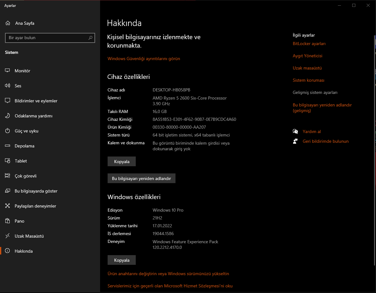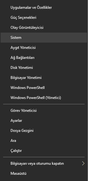 1. Windows simgesine sağ tıklayıp sistem bölümüne gelin,