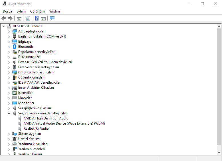 7. Başlat'a Aygıt Yöneticisi'ni aratıp, gelen ekranda ses, video ve oyun denetleyicileri'ni seçin,