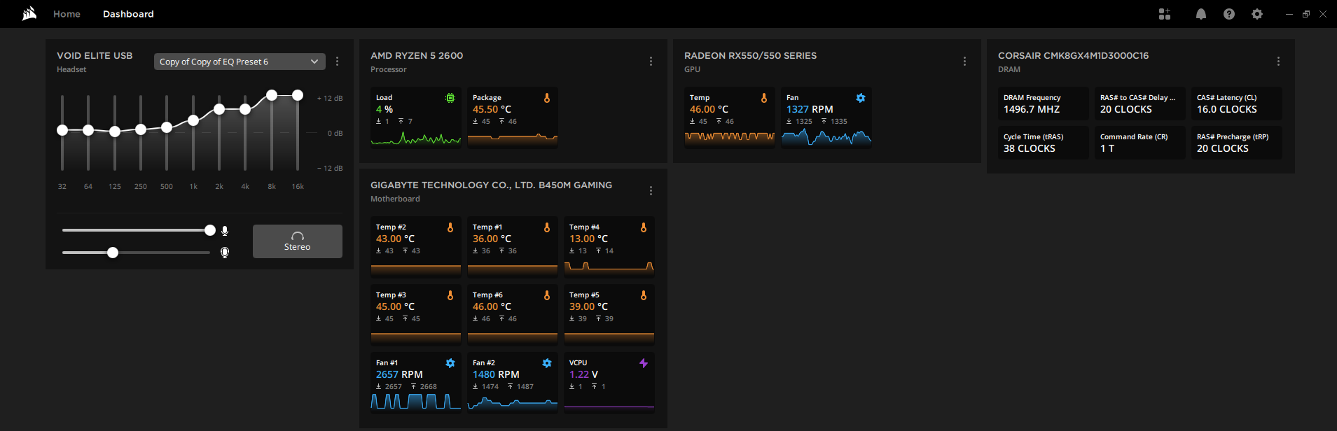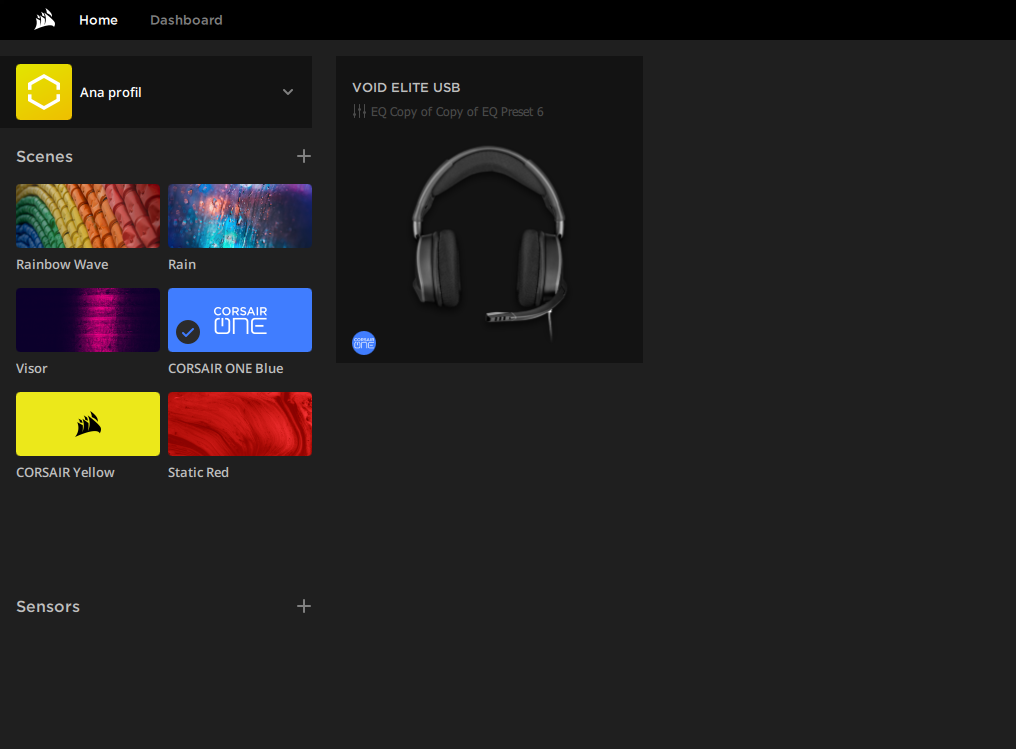 iCUE: Sürücüyü kurduktan sonra karşınıza bazı renk modları ve kulaklığın kendisi çıkacak. Buradan bazı renkleri seçebilirsiniz, bunlar hazır ayarlar. Kulaklığa tıkladıktan sonra solda ekolayzer ayarları, renk ayarları ve cihaz ayarları var. Işık ayarlarına hiç girmeyeceğim, orasını siz kurcalarsınız :) Ekolayzer ayarlarında hazır gelen ayarların hepsi kötüdür. FPS modu rezalet. En azından bana öyle geldi :) Sol alttan 7.1 ayarını açıp kapayabiliyorsunuz. Auto audio repositioning ayarı ise sesleri daha anlaşılır yapıyor diyorlar fakat ben fark göremedim. Mikrofon sesini buradan ayarlayabilirsiniz. Sidetone ise siz konuşurken çok az olarak kulağınıza sizin sesinizi veriyor, bunu da buradan açıp kapatabilirsiniz. Şuan kullandığım ekolayzer ayalarını detaylı olarak vereceğim. Şuan önden gösteriyorum. Kulaklık kısayollarında size bahsettiğim "mic on, mic off" seslerini kapatmak için device settingse girip voice promptsu kapatmak. Ayrıca device settings yerinden kulaklığın ışık seviyesini azaltıp çoğaltabilir, yazılım güncellemesini yapabilirsiniz. Yukarıda yer alan dashboard kısmına sistem özelliklerinizi koyabilirsiniz.
