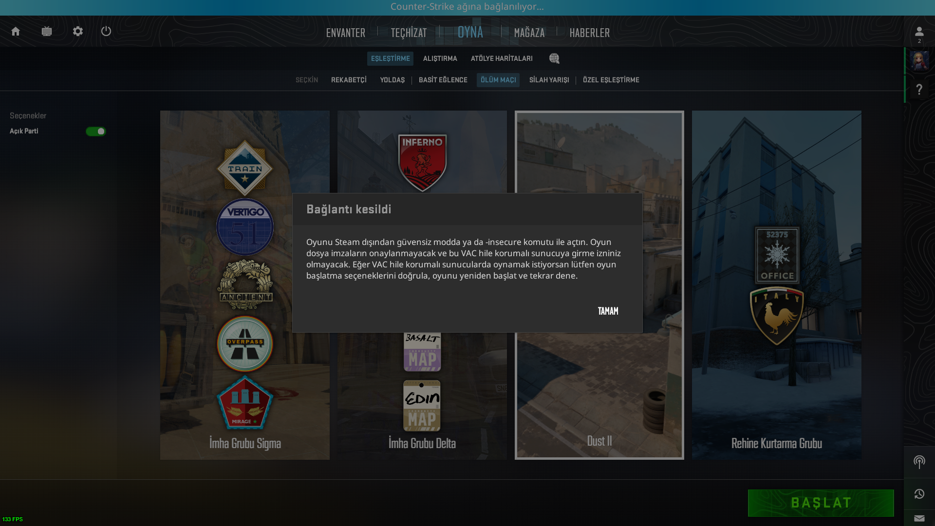 Counter-Strike'ta bir topluluk sunucusunda oynamaya girmiştim ve bu hatayı aldım. Oyunu yeniden başlattım, düzelmişti ama çok sık olmaya başladı. Bunu nasıl çözerim, bilen var mı? Oyun dosyalarının bütünlüğünü doğruladım, başlatma seçeneklerine baktım ama bir şey bulamadım.