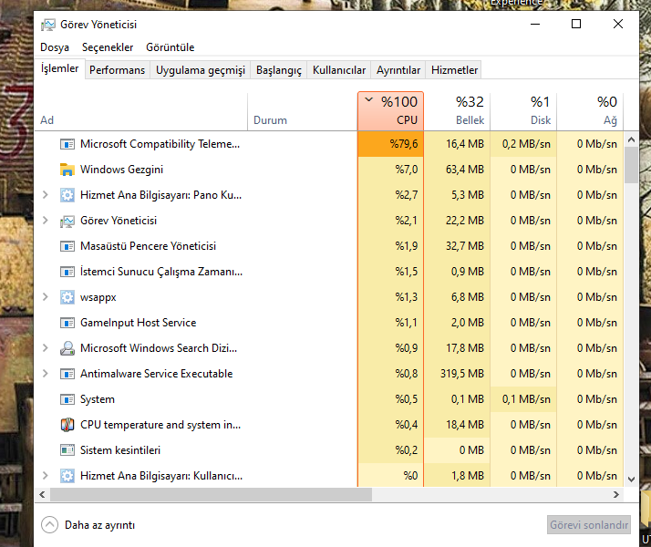 Resim atar mısın görev yöneticisine girip işlemciyi yoran uygulama nedir bakalım ama virüstür %90