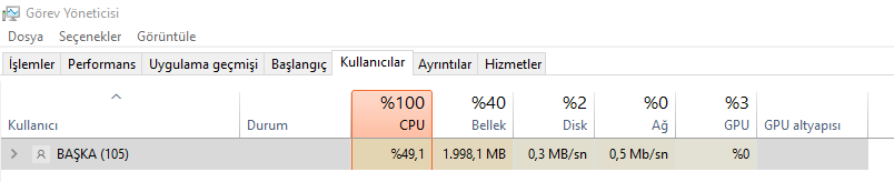 Görev Yöneticisi'ni açtığımda CPU kullanımı %100 oluyor ve hiç düşmüyor. Mining olabilir mi ya da neden oluyor? Nasıl düzeltebilirim? Arada oyunlarda drop giriyor.