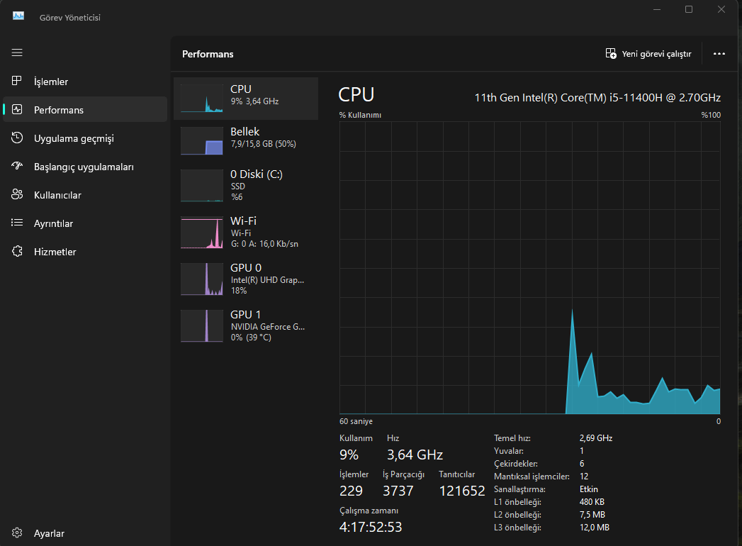 Güç planınız galiba yüksek performans. Dengeli modu seçin.Arkadaşlar merhaba laptopumun ısınma sorunun sebebi aşırı CPU kullanımıymış. Yüzdelik olarak az gözükse de boşta 3GHz'nin altına inmiyor maalesef. Düşürmek için ne yapmam lazım sizce, yardımcı olur musunuz?