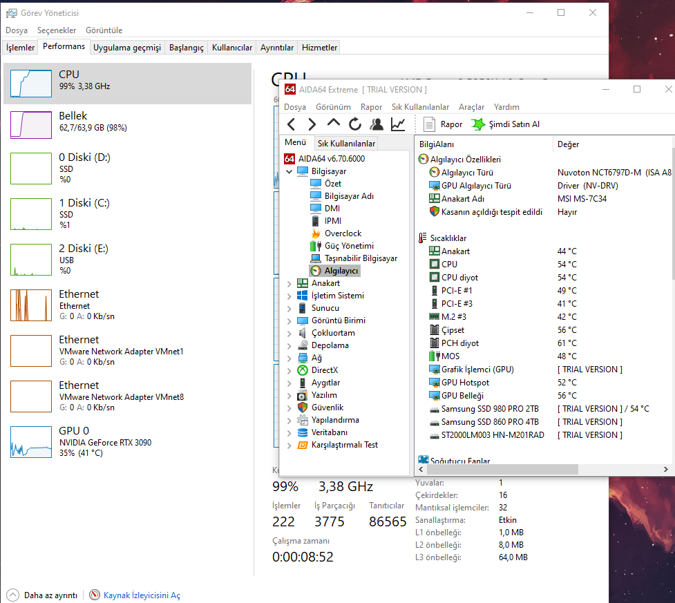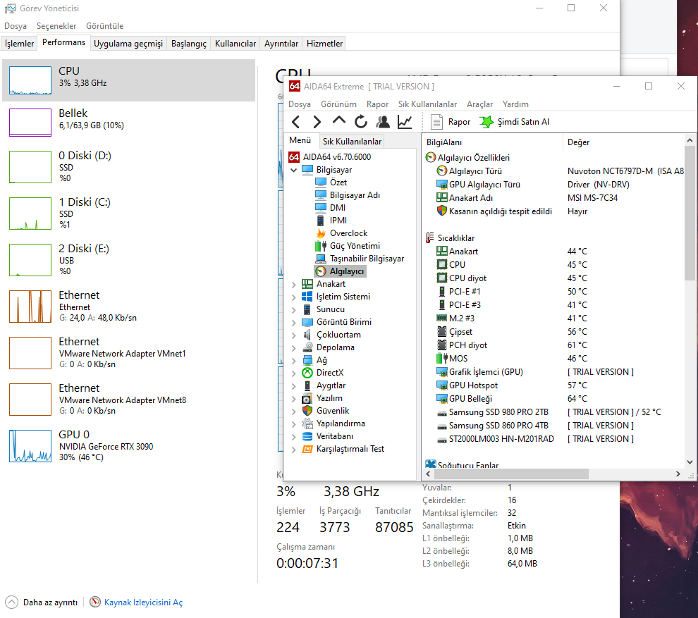 biraz önce son sama sekilde görev yöneticisi nde gözüme çarpan bir olay olay. İşlemcim boşta bile 4.34ghz bandında geziniyordu. İnternette araştırma sonucunda biostan core performance boost auto yerine disabled yaptım. Sonuçlar eklediğim görsellerde mevcut. Termal macun değişimi yine yapıp sonuçları merak ediyorum ama muhtelemen 1 ay sonra yapacağım. Konumu kısayol olarak yerimlerime ekledim muhakkak rabbim nasip ederse güncelleceğim. Sistemim boşta iken 37-44 arasında. Yükte en fazla 60 gördüm. Olur da birisi konumu okursa belki fayda sağlar diye bu güncellemeyi yapıyorum.