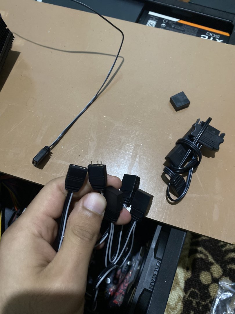 soğutucuya bağlı olarak bir tek bu attığım kablo var onun dışında fan için 3pin5v argb fanı sataya takan bi kablo çıktı o fan için birde şöyle 3pin dişiyi 3pin erkeğe çeviren bi çoğaltıcı kablo gibi birşey var