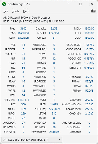 C9BLM varmış. C9BKV ve C9BLM, Rev.E-Die'ın en iyi 2 çip revizyonu. tRCDRD ve tRP'yi düşürebiliyor olman gerekiyor.3800'de boot olmuyor, 3733'de stabil değil. O yüzden 3600 bıraktım.