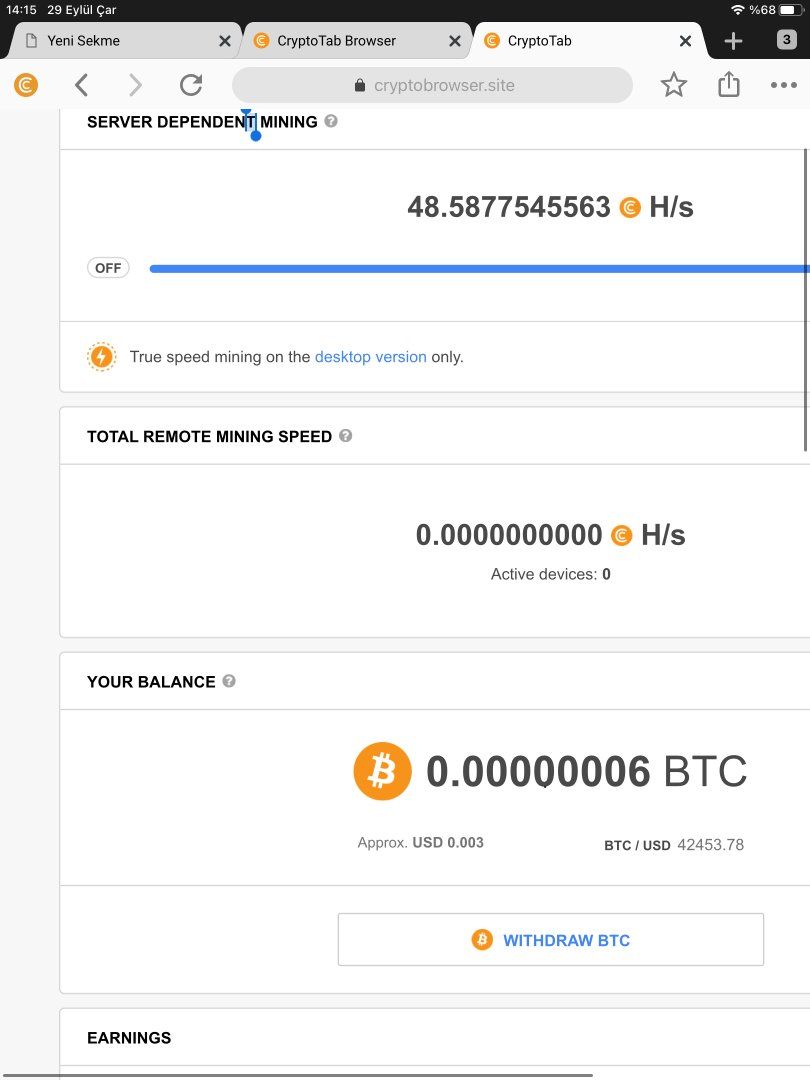 6 satoshi kazmışsın şimdiye kadar, binance görevlerini yapsan günde 300-400 satoshi veriyor.