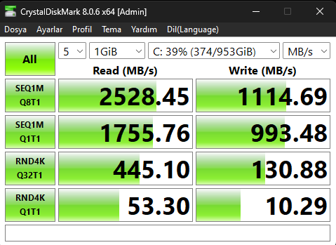 Yazma-okuma hızları orantısız crystaldiskinfo ekran görüntüsünü atar mısınız