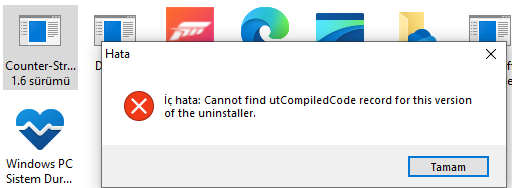 CS durağından 1.6 indirdim. Silerken aşağıdaki hatayı alıyorum. Bu programı nasıl kaldırabilirim?