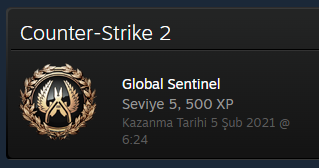 Öncelikle Global Sentinel Steam rozeti, oyun içi herhangi bir rütbe ile alakası yok. CS2'nin kartlarını satın alıp rozet işleyerek elde edersin.