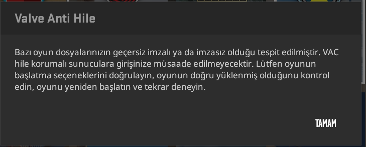 Merhaba, herkese iyi günler dilerim. CS 2 oyununa Steam'den oyna tuşuna bastığımda başlatılıyor diyor biraz bekledikten sonra çalışıyor diyor fakat biraz daha bekledikten sonra Steam'de oynaya bastığım yerde tekrar oyna yazıyor. Sonra oyunun dosyalarından girdim oyun açıldı Steam ağına da bağlandı fakat Online girmeye çalıştığımda yukarıdaki hatayı alıyorum. Oyunu sildim yeninden yükledim dosyalarını doğruladım bütün atölyeleri de sildim ama olmadı başlatma seçeneklerinde yazan her şeyi de sildim bilgisayarı yeniden başlattım ne yaptıysam olmadı bu sorunun çözümünü bilenler yardım edebilirler mi?