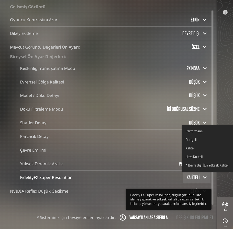 Bu ayarlarda hiç piksel gözükmüyor bende. FidelityFX konumunu kaliteli yapın görsel de paylaştım.