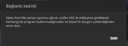 Arkada şarkı dinleyip 1,2 el ölüm maçı atayım diye CS girdim böyle bir hata aldım. Maçın bitmesine 3, 4 saniye kala.