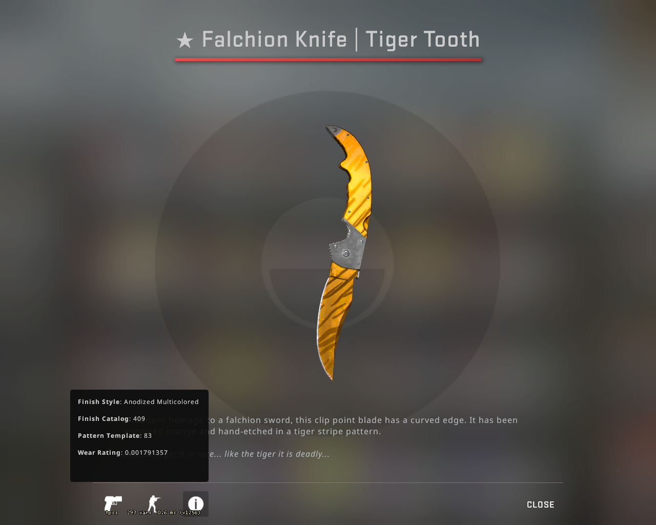 CS:GO'da hayatımda açtığım 2. kutudan bıçak çıkarttım. Bıçak pala bıçağı kaplan dişi (Falchion Knife Tiger Tooth) ve floatta dünyada 61. sıradayım. 0.001 floatı var. Bunu hangi güvenilir sitede en çok kaç TL'ye satabilirim?