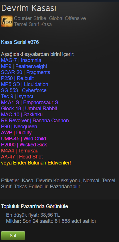CS:GO Prime aldım 40TL'lik devrim kasa düştü. Daha sonradan düşecek kasalar içinde bu kasaları CS2ye kadar bekletmekte fayda var mı yoksa satmalı mı?