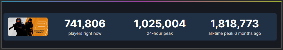 Selam, CS2'yi takip etmiyorum lakin 2014'ten beri CS:GO oynayan biri olarak ve çocukluğu CS ile geçmiş birisi olarak CS2 ile CS'yi kendimde bitirdim. Bugün oyunun istatistiklerini kontrol ettim: