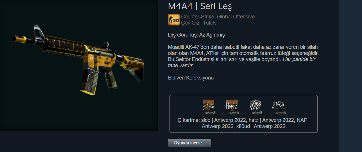 Merhaba. M4A4 alacağım ve bu ikisinde çok kararsız kaldım. Seri leş az aşınmış 460TL civarı. Koalisyon eskimiş 340TL civarı. Sizce hangisi?