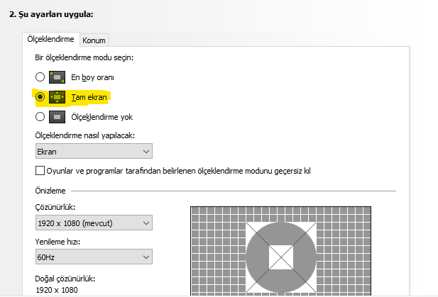 Laptop üzerinden oynuyorsanız ve dahili gpu İntel ise, İntel HD grafik ayarlarından 'Tam ekrana ölçeklendir' Seçeneğini seçmeniz gerekiyor.Bir çok yolu denedim fakat NVIDIA Control panelinde ölçeklendirmeyi GPU yapamıyorum birçok kez denedim ama hiçbir şekilde olmuyor başka hangi yollar var veya neden bende GPU olmuyor nasıl düzeltebilirim?