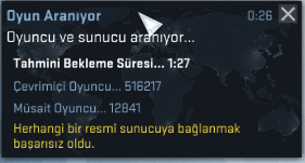 Herhangi bir oyun moduna giremeye çalıştığımda ise girmiyor ve hata veriyor;
