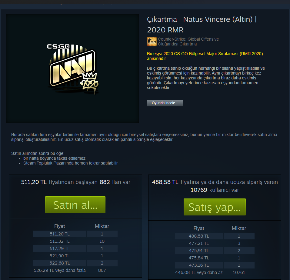 Ben de bekleyeceğim hocam, 1-2 sene beklerim muhtemelen. Belki 1-2K fiyata çıkar. Belki de 2021 RMR'ı Na`Vi kazanır da fiyatı eskisini bile geçerDaha bekleyin bence. Ben sparişler bitene kadar bakleyeceğim.
