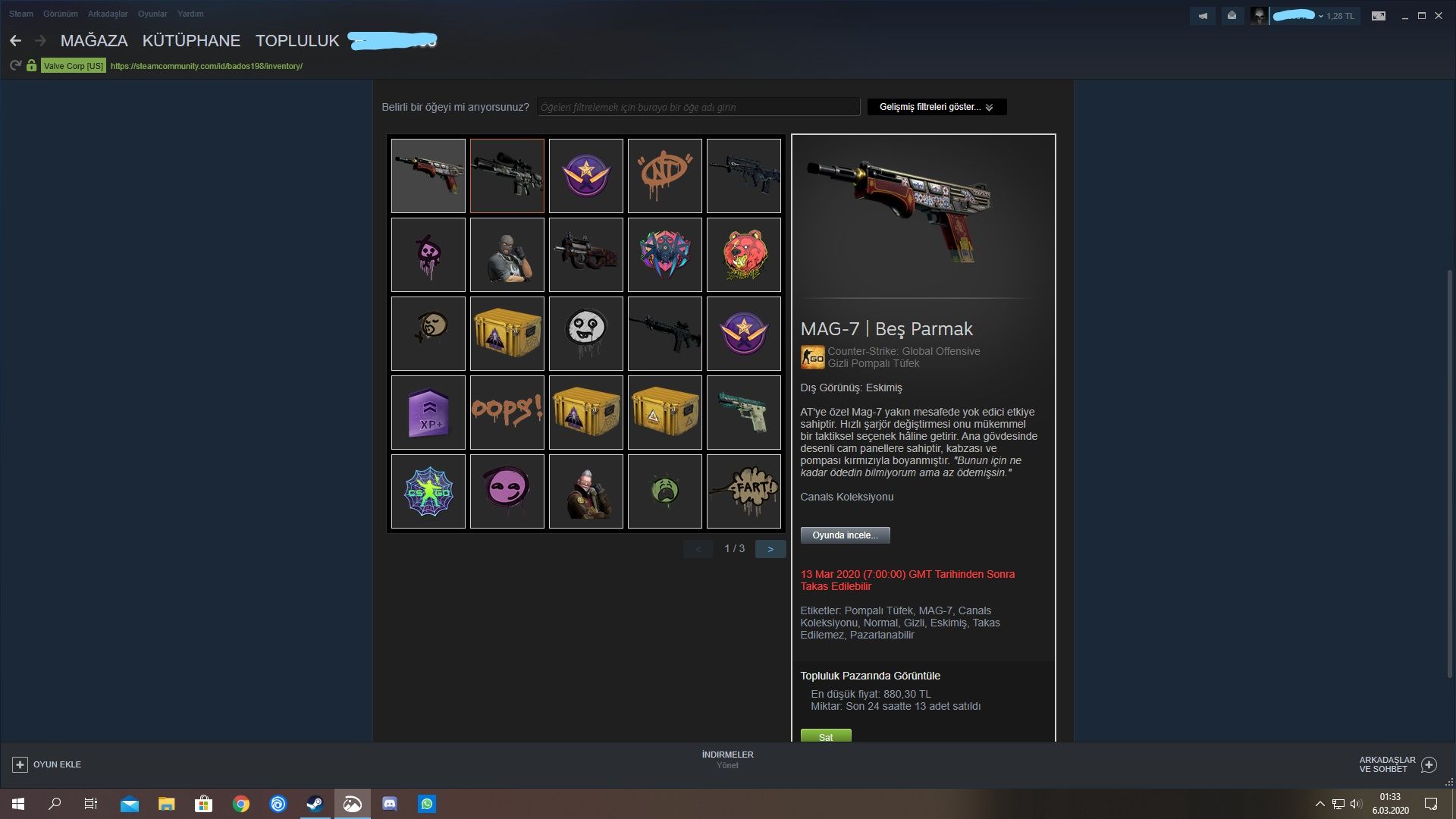 Geçmiş olsun.Parçalanmış Ağ operasyonunda MAG-7 Beş Parmak Eskimiş düşmüştü, 950₺'den sattım, şu an 6700₺ Pazar'da.Eki Görüntüle 1216407