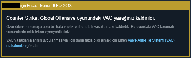 Peki VAC yedikten sonra Steam destek yazsam kalkması mümkün olur mu?