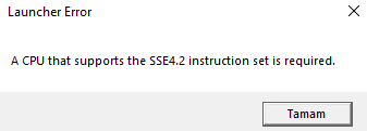Yeni gelen güncelleme ile artık eski işlemciler oyunu açamıyor. Bende Xeon E5450 var, SSE4.2 desteklemediği için yeni güncelleme sonrası oyun açılmıyor. En azından 60 70 FPS oynuyordum o da gitti. 16 yıllık işlemci olduğu için yapacak bir şey yok.