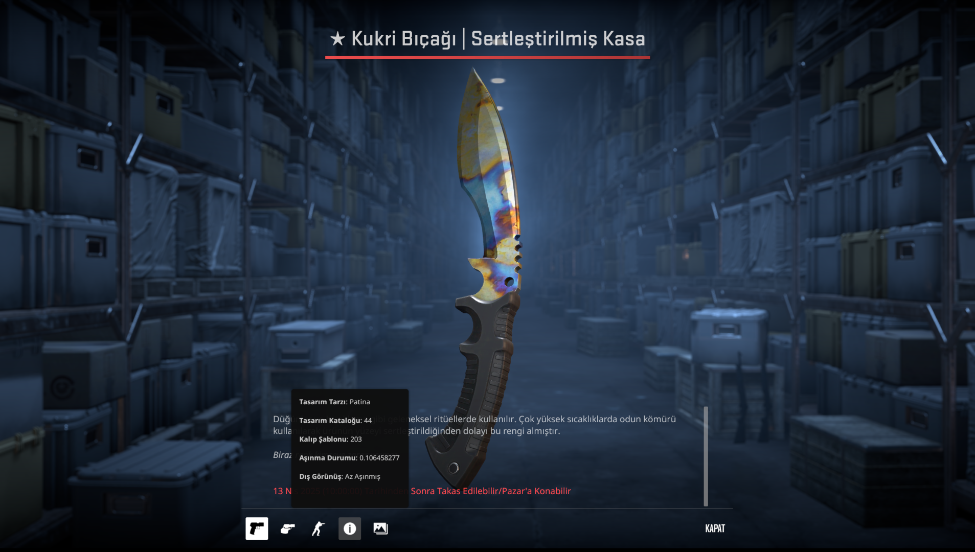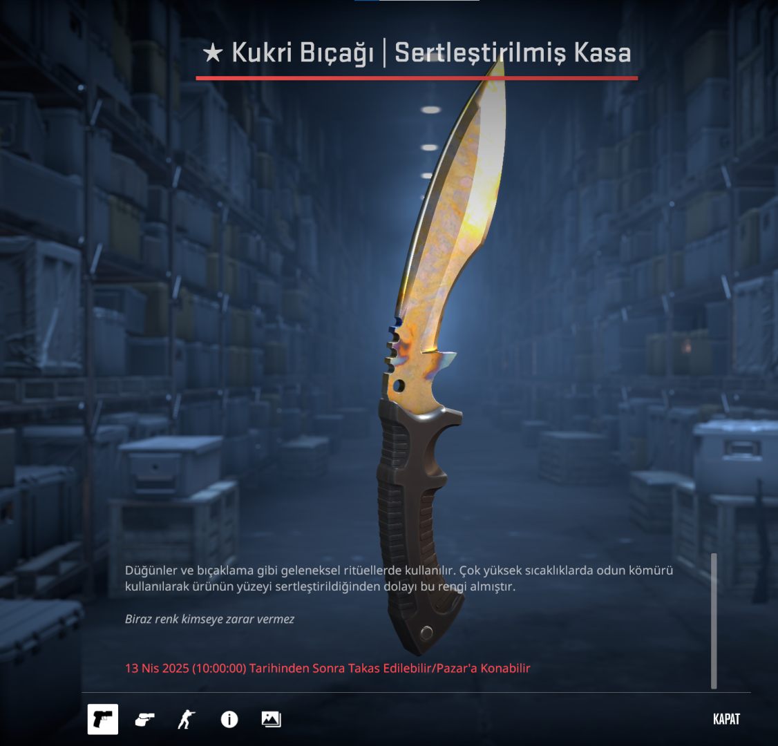 Merhaba CS2'de kasadan kukri bıçağı sertleştirilmiş kasa az aşınmış çıktı floatı 0.106 ne kadara ve nereden satışa koymalıyım?