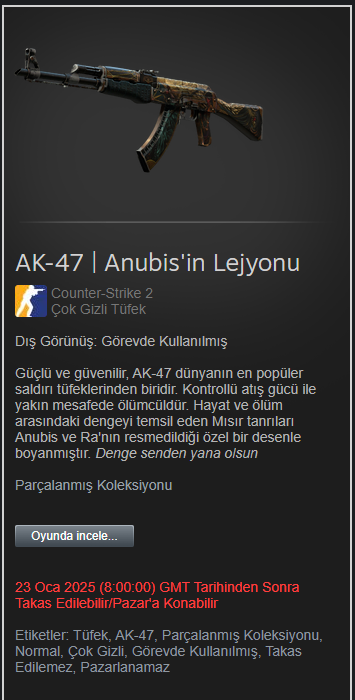 1 bowie Case Hardened 1 M4A1-S mecha var. Satılık. Ekliyorum Steam'den.