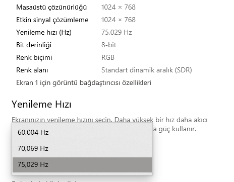 Arkadaşlar monitörüm 165 Hz. CS2 girip grafik ayarlarını 1920x1080 165Hz'den 4:3 1024x768 165 Hz yapıp ayarlardan çıkıp tekrar girince Hz otomatik olarak maksimum 75Hz olabiliyor. Yani seçenekler 165'e kadarken 60-70-75 olarak kalıyor. Bir çözümü var mı?