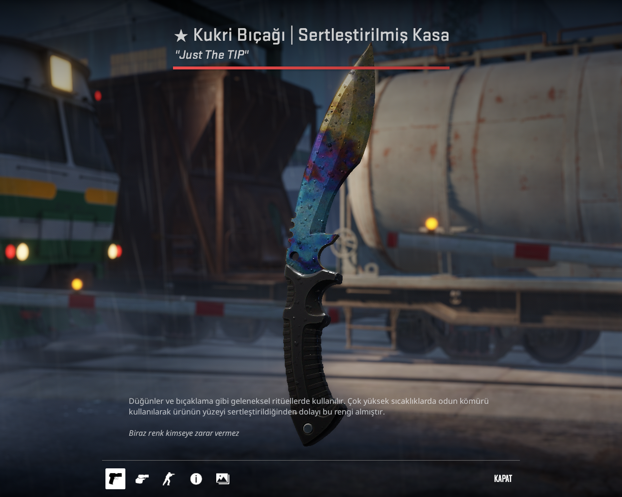 Elimde böyle bir kukri var, patterninden dolayı daha fazla gidebileceğini düşünüyorum. Patterni 318. blue gem mi? Ya da ona yakın mı? Onu çözemedim.
