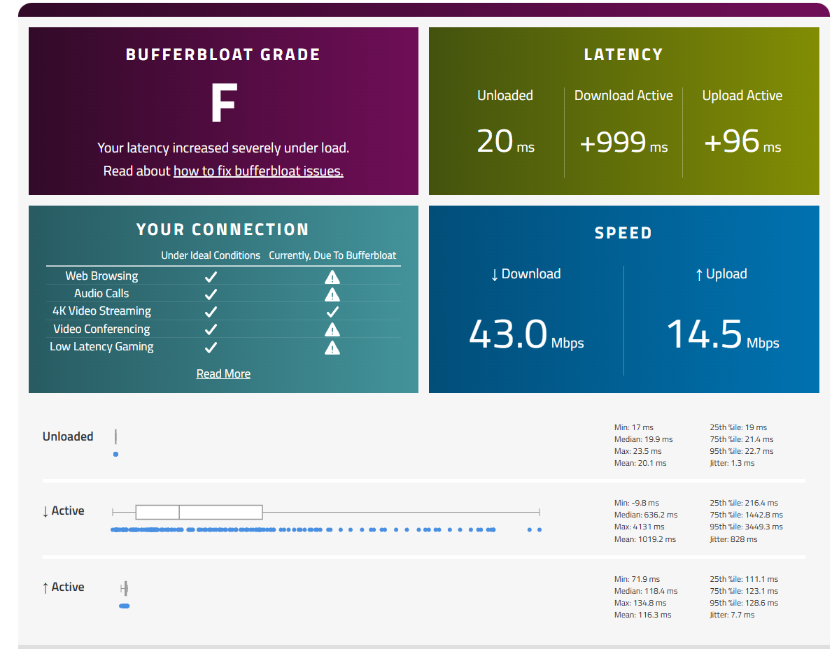 Bufferbloat testi yapıp sonucu atabilir misin?