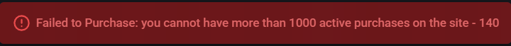 "Failed to purchase: You cannot have more than 1000 active purchases on the site - 140"